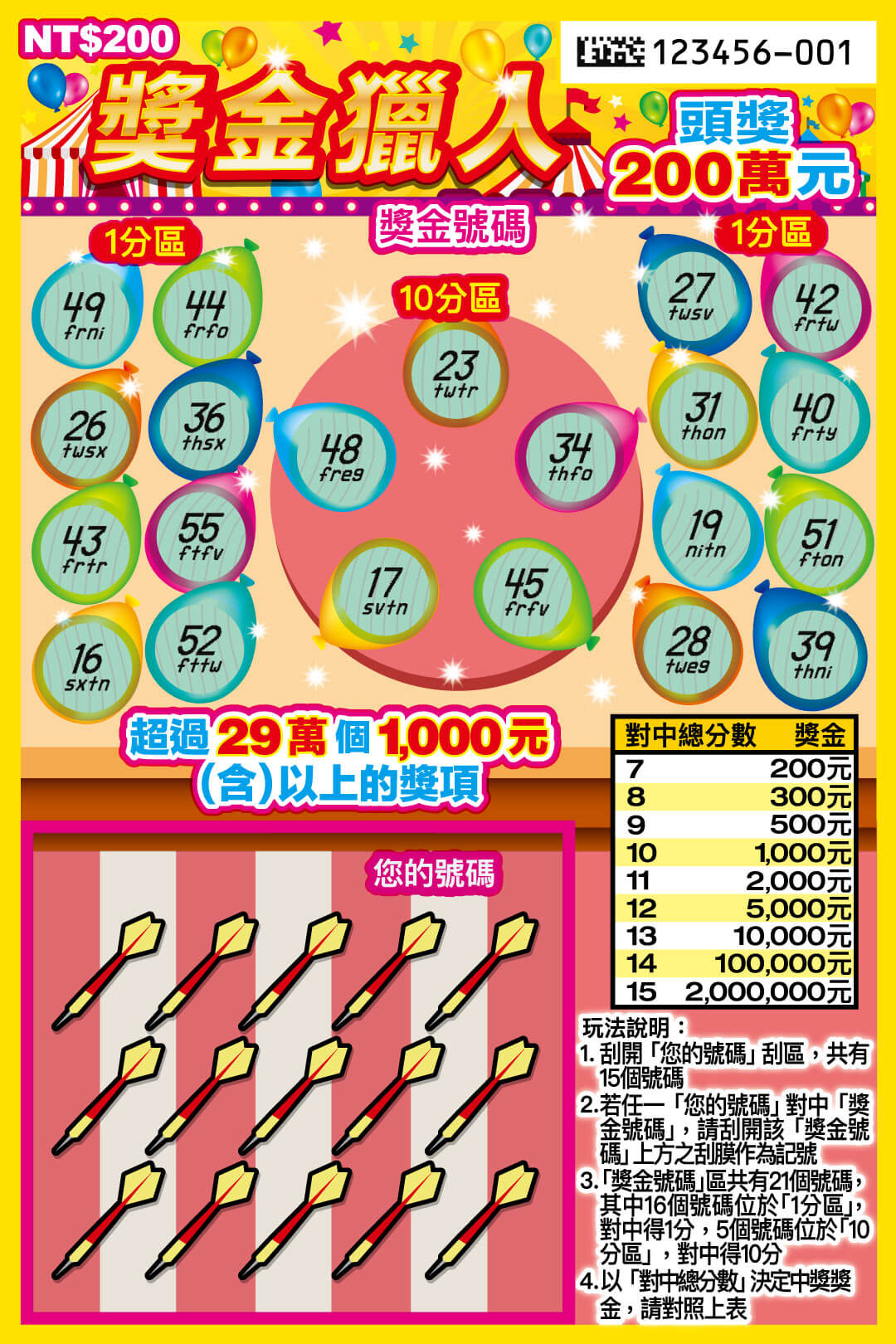 以上刮刮樂資訊為參考台灣彩券官方網站所提供